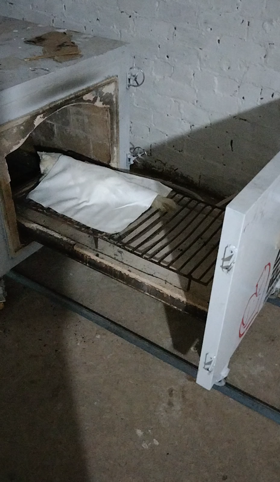 3、宝贝就像平常睡着了一样,通过滑轨慢慢推入,高温柴油火化炉,二次燃烧室、三层过滤有害气体,最高炉内温度1100摄氏度。